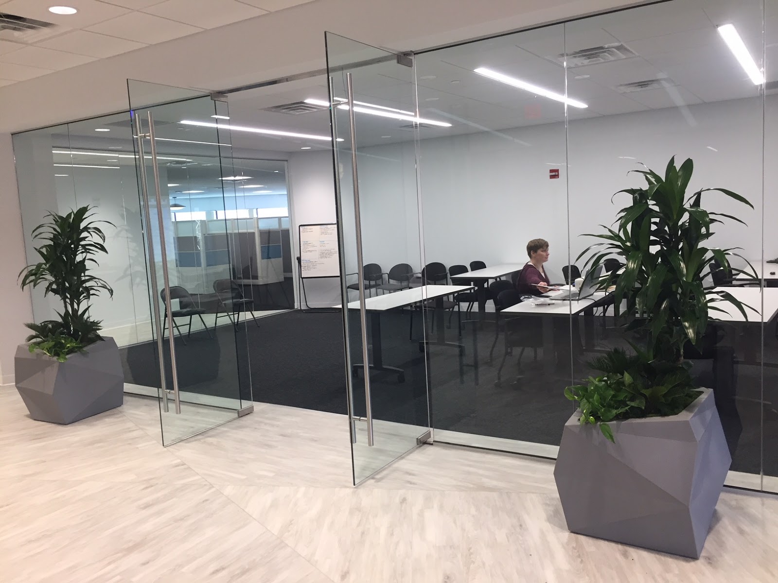 | Entrance way enhancement with designer planters and interior office plants |