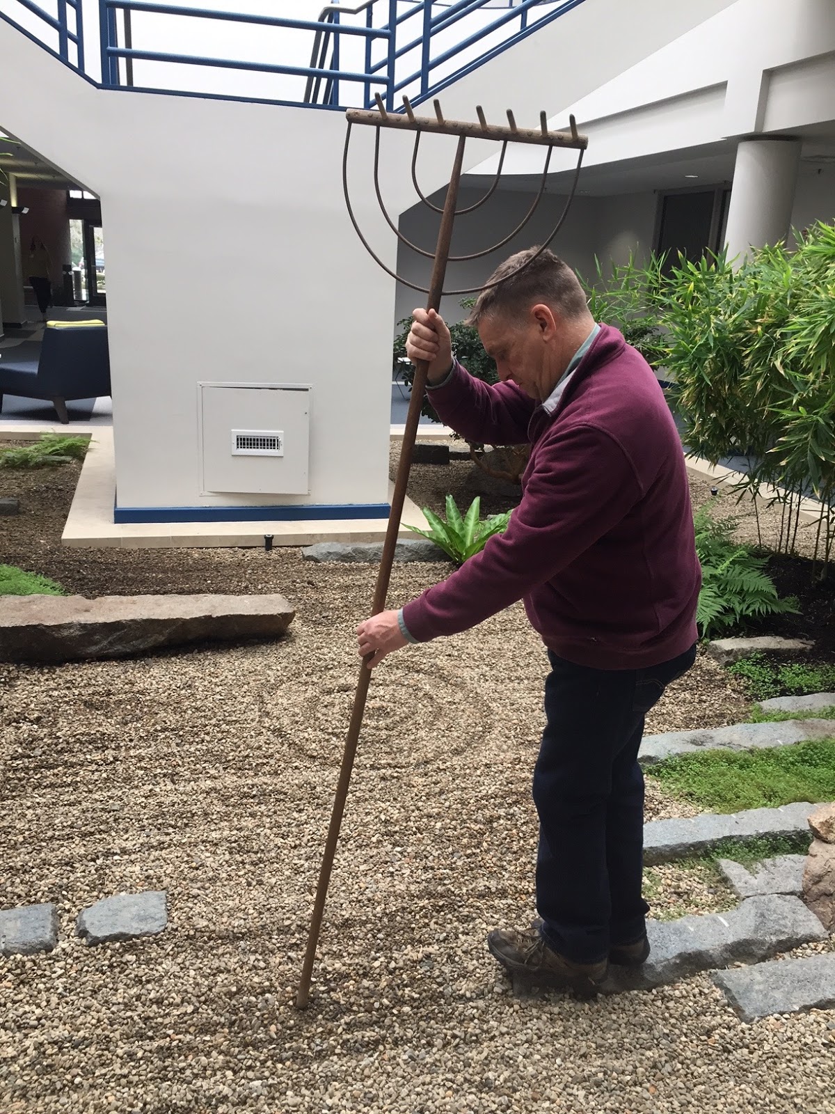 | Brian Designing the Zen Garden in Peabody, MA Water droplets pebble designs |