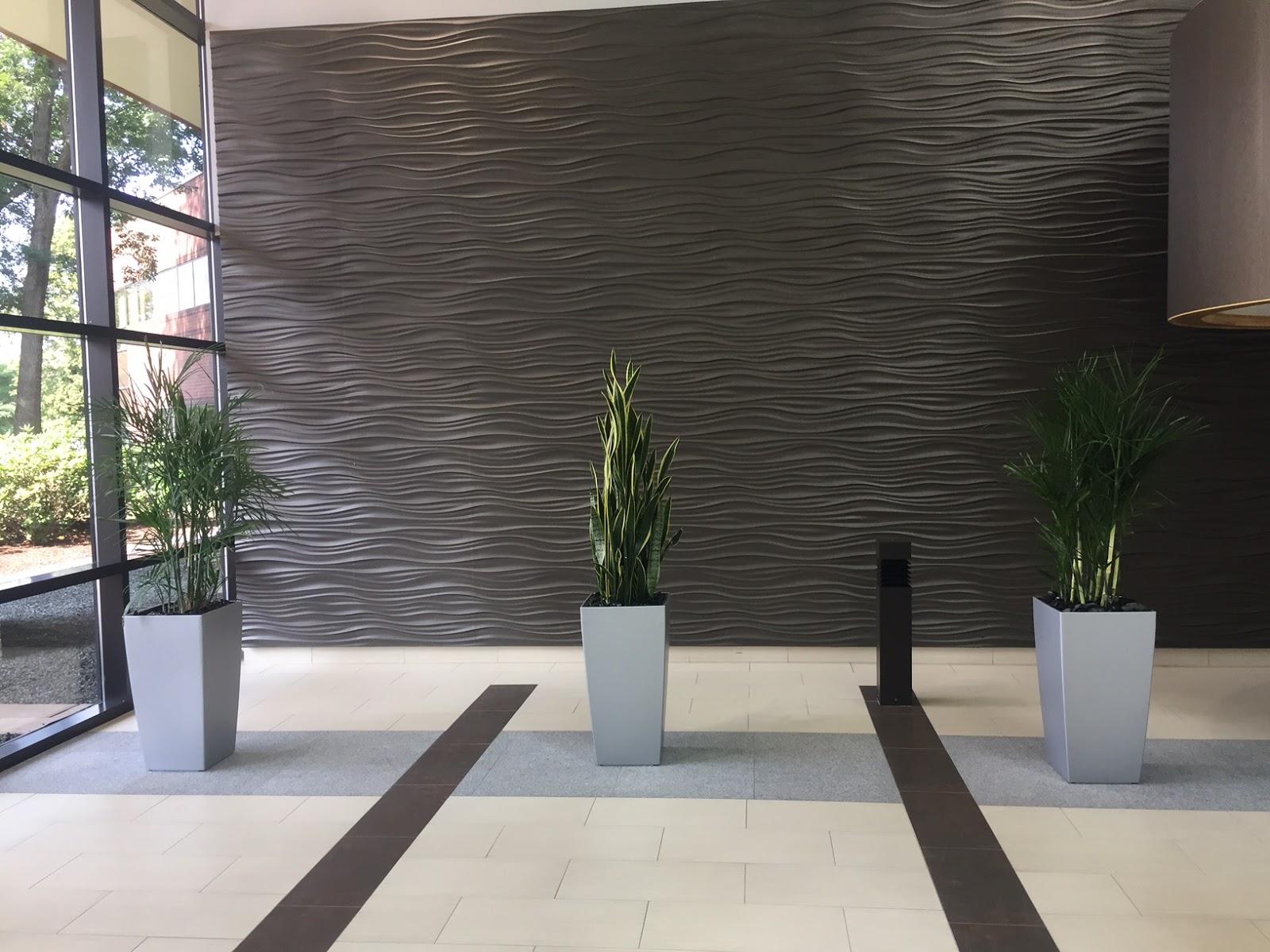 Ultra Sleek Lobby Design Using Interior Office Plants and Cubico Planters Chelmsford, MA