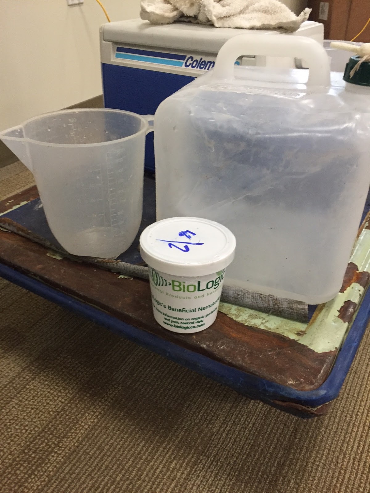 Administering Nematodes to eradicate any insect eggs within potting soil |