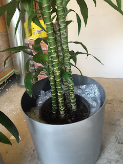 “The before and after photo[s] speak for themselves. The deep granite planter filled with an 8′ Ficus Benjamina, assorted interior green plants and colorful bromeliads welcomes our tenants and clients”